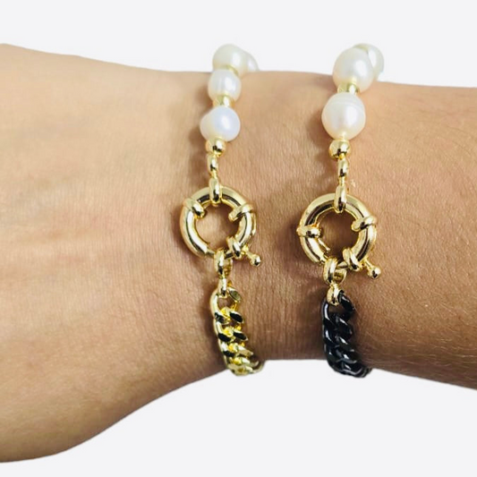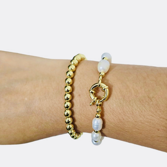 Es nuestra colección con diseños a base de perlas y chapa de oro de 18k.