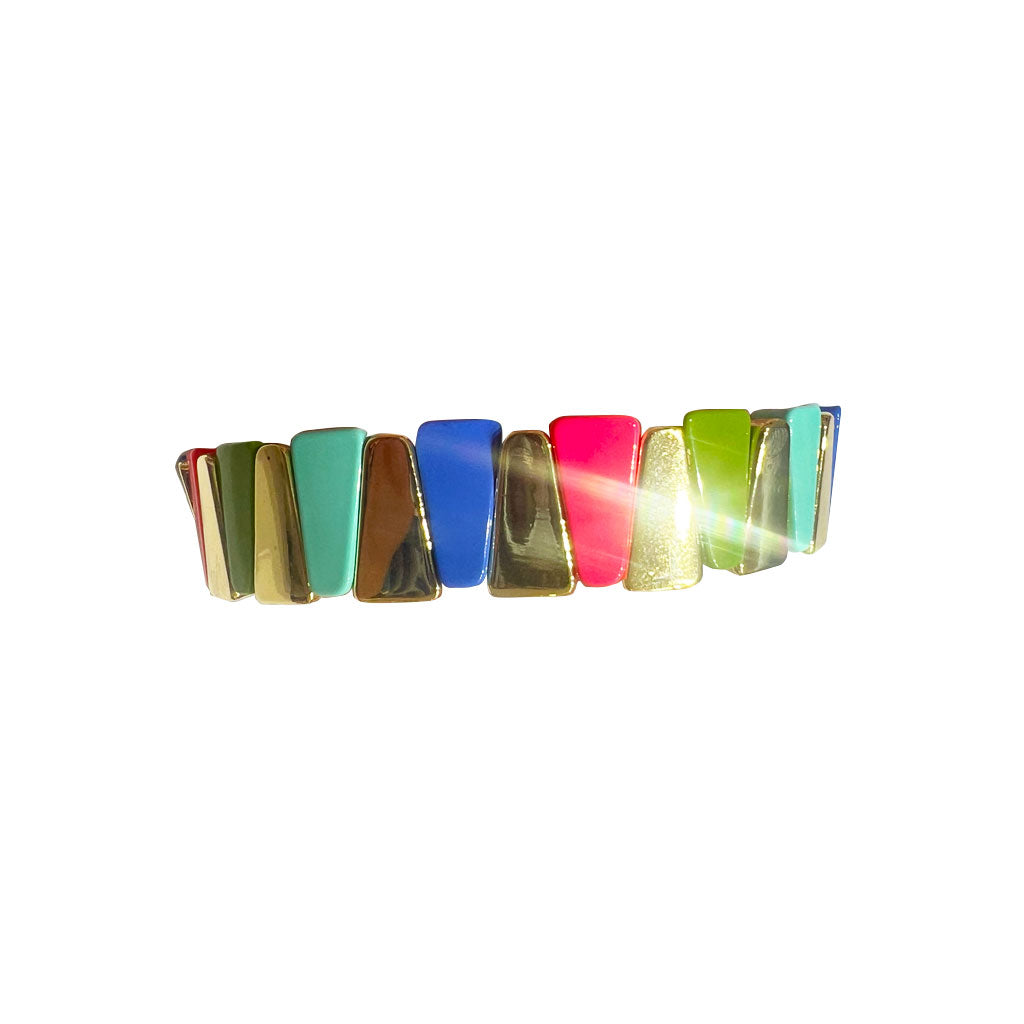 Pulsera con diseño geométrico pintado con esmalte de colores y un toque metálico.